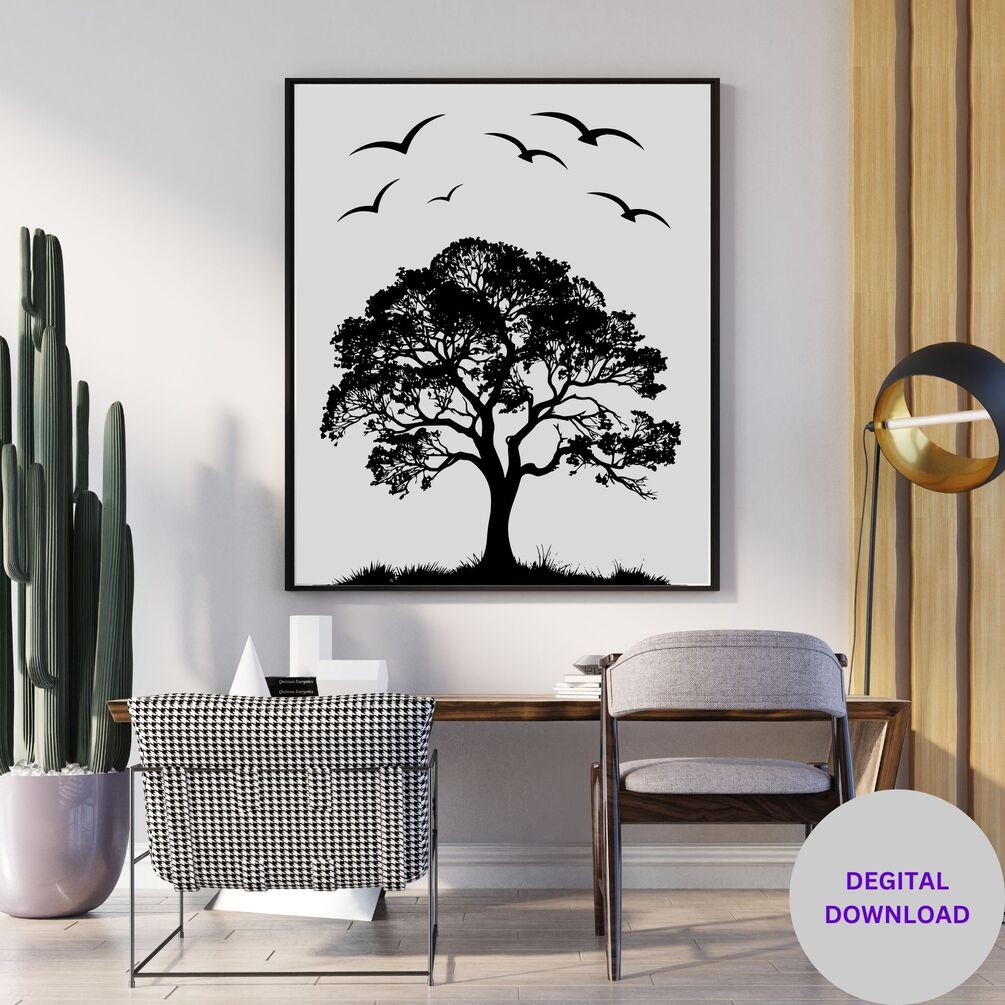 You will get an enchanting digital art print, 'Enchanting Black Tree,' that transports you to a mystical realm of wonder. This captivating artwork features a majestic tree veiled in darkness, exuding an alluring balance between light and darkness. , you can effortlessly bring this mesmerizing piece to life on canvas, photo paper, or as your screensaver. Embrace the magic of the night and elevate your space with the 'Enchanting Black Tree' digital art print - a perfect addition to your home decor or digital art collection.
